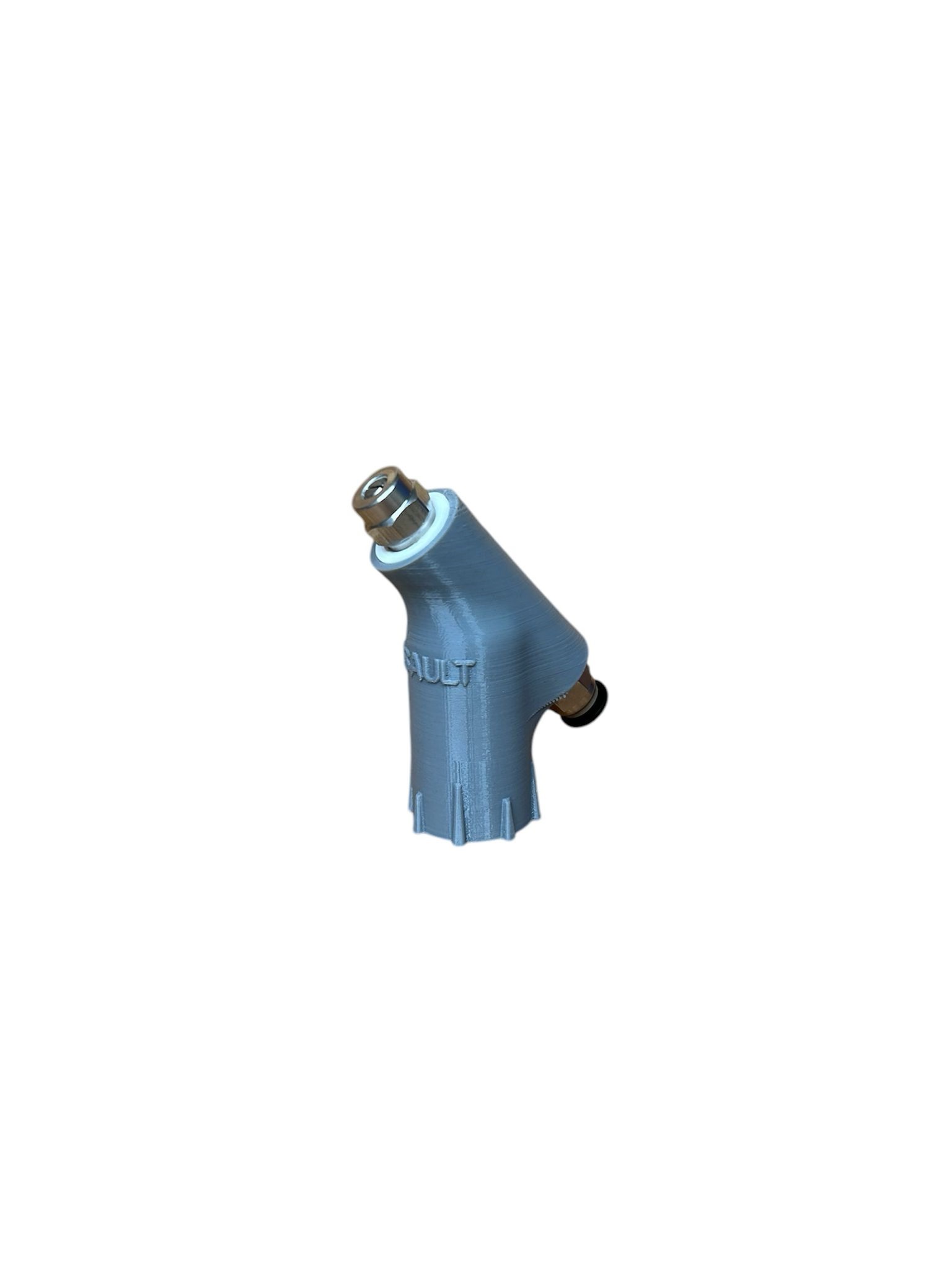 The Nozzle fits any water fed pole angle adapter that has a 22mm European thread size and is supplied in standard grey or Hi-Vis green.
