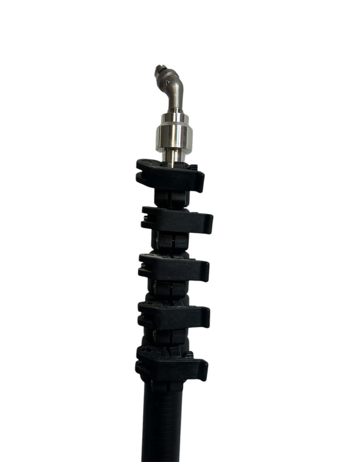 The Alloy Sniper Nozzle fits directly into most popular brands of water fed poles and it comes with a 65 degree fan jet nozzle this allows to cover large areas Fast!!